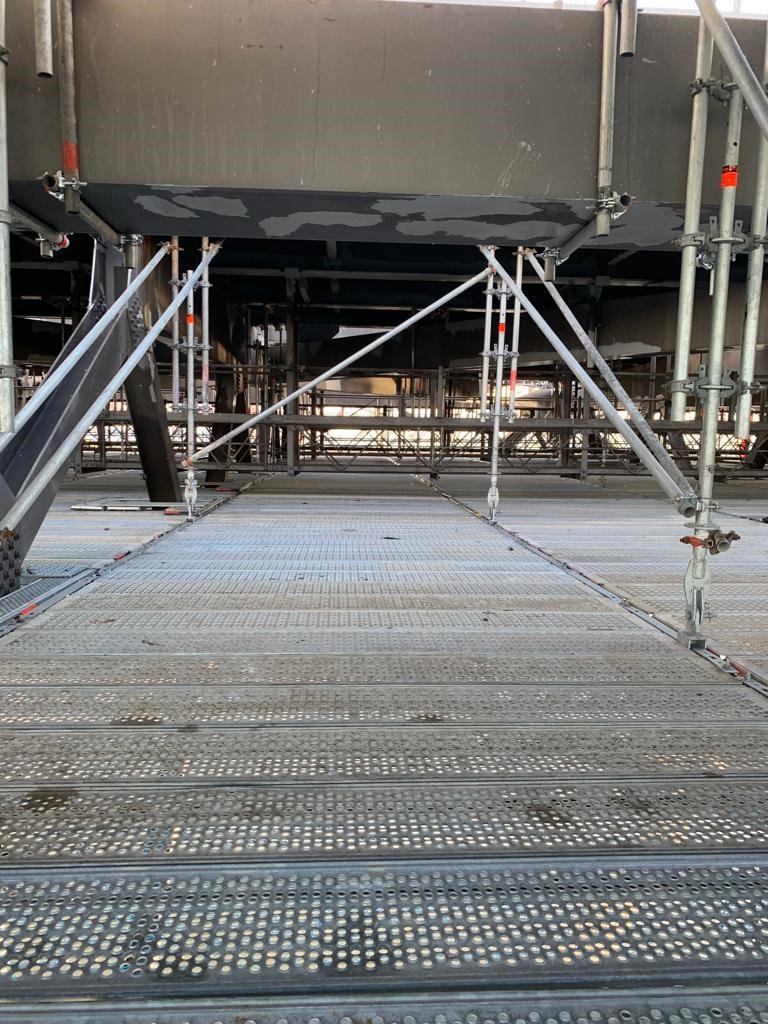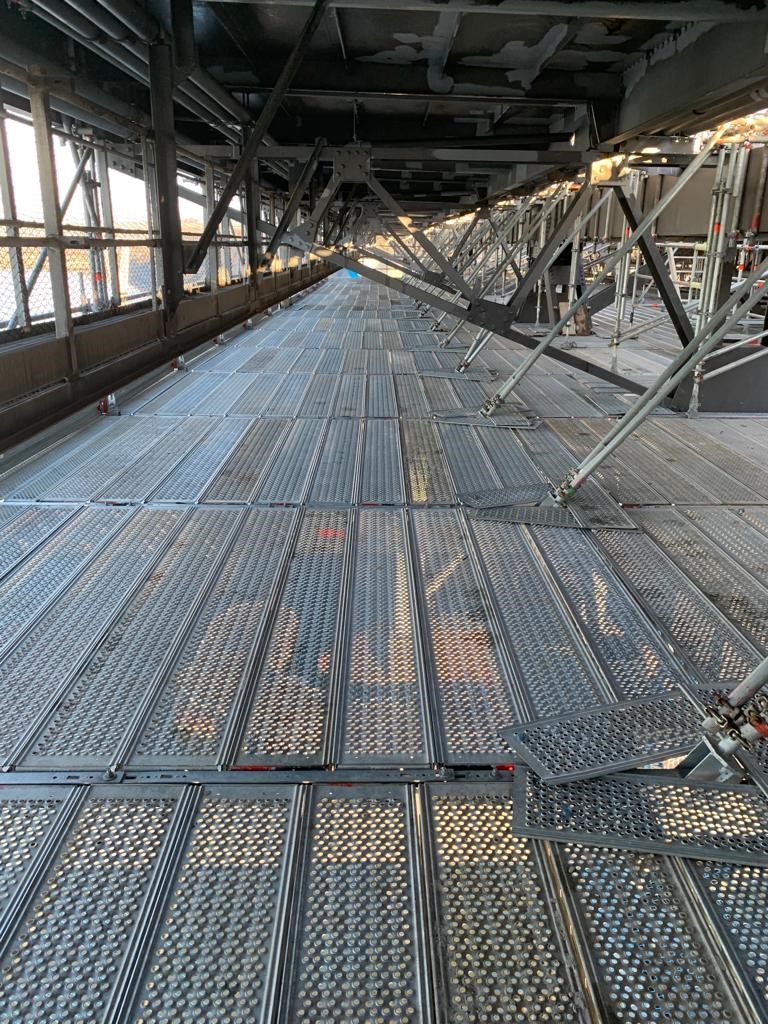 Broxburn-based Hard Rock Scaffolding opted to use FlexBeam, an aluminium box section with suspension accessories to create the underdeck work platform. This particular use of the FlexBeam and structure Hard Rock built was the ‘largest of its kind’ to date.