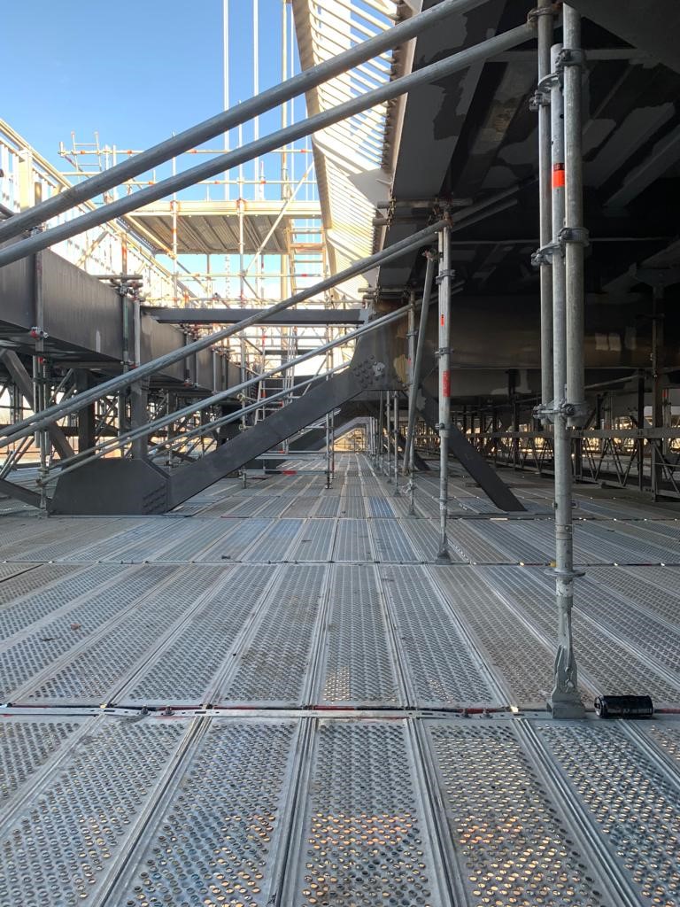 Layher added that the walk-through areas created were ‘clear, gap-free and provided ample amounts of space’ for the works to take place. Sean Pike concluded, ‘this is a prestigious project which we have proudly been involved with, in the background on a technical and logistical basis in support of our client and theirs at a strategic level’.