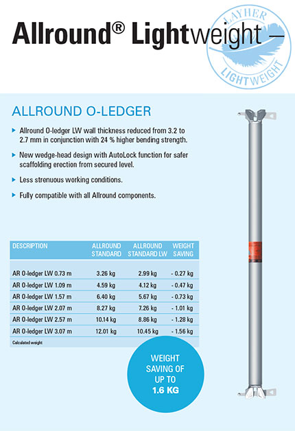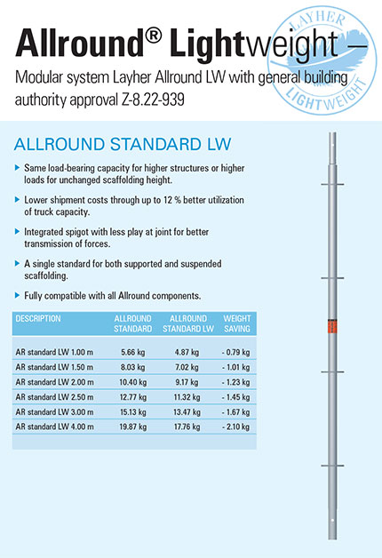 - Fully compatible with existing Layher Allround systems scaffolding equipment