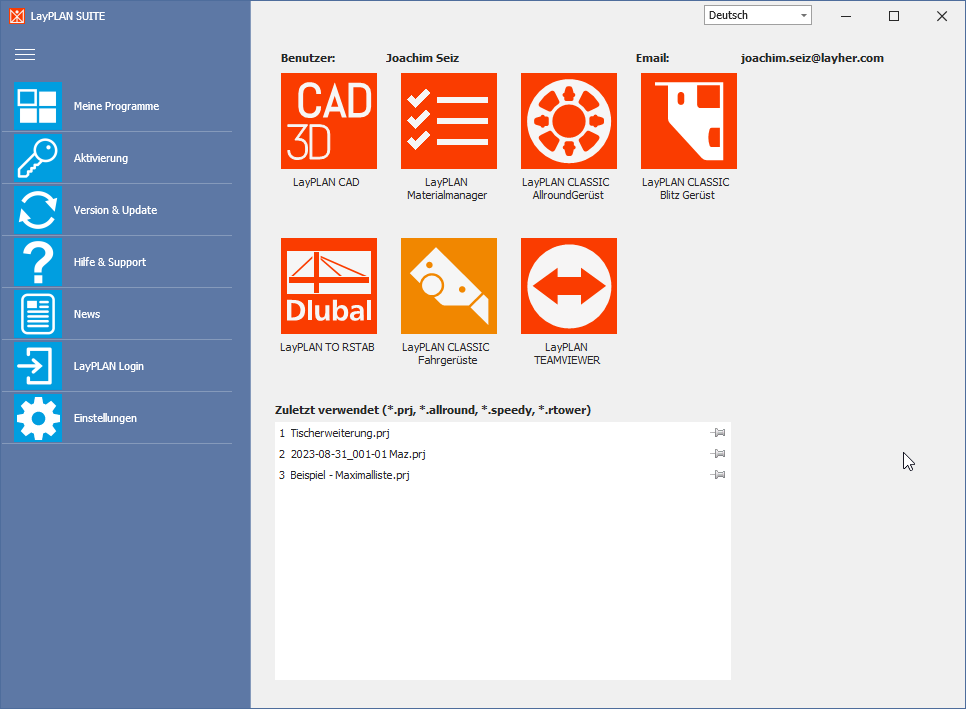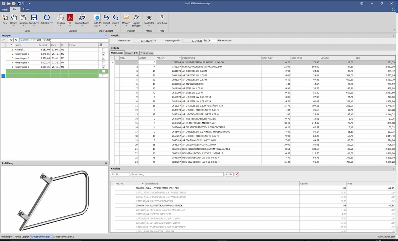 • Automatic creation of material lists from LayPLAN CLASSIC and LayPLAN CAD