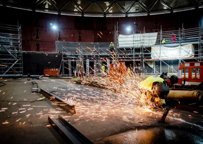 “The scaffolding has to provide access to both vertical and horizontal welds for each ring – a total of some 150 linear metres,” says Jonathan Leyland, UK Design Manager at KAEFER. The external walls of each containment liner also feature a series of circular protrusions which had to be accommodated by the scaffolding design.