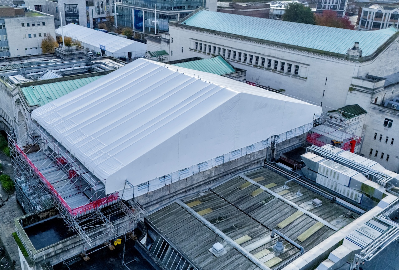 This modular roof system not only protects the gallery’s structure from environmental hazards but also incorporates a rolling feature, allowing easy access to work areas without compromising on stability. Layher’s unique Keder system is designed to withstand diverse environmental pressures, making it a go-to solution for complex and sensitive sites like the Southampton City Art Gallery.