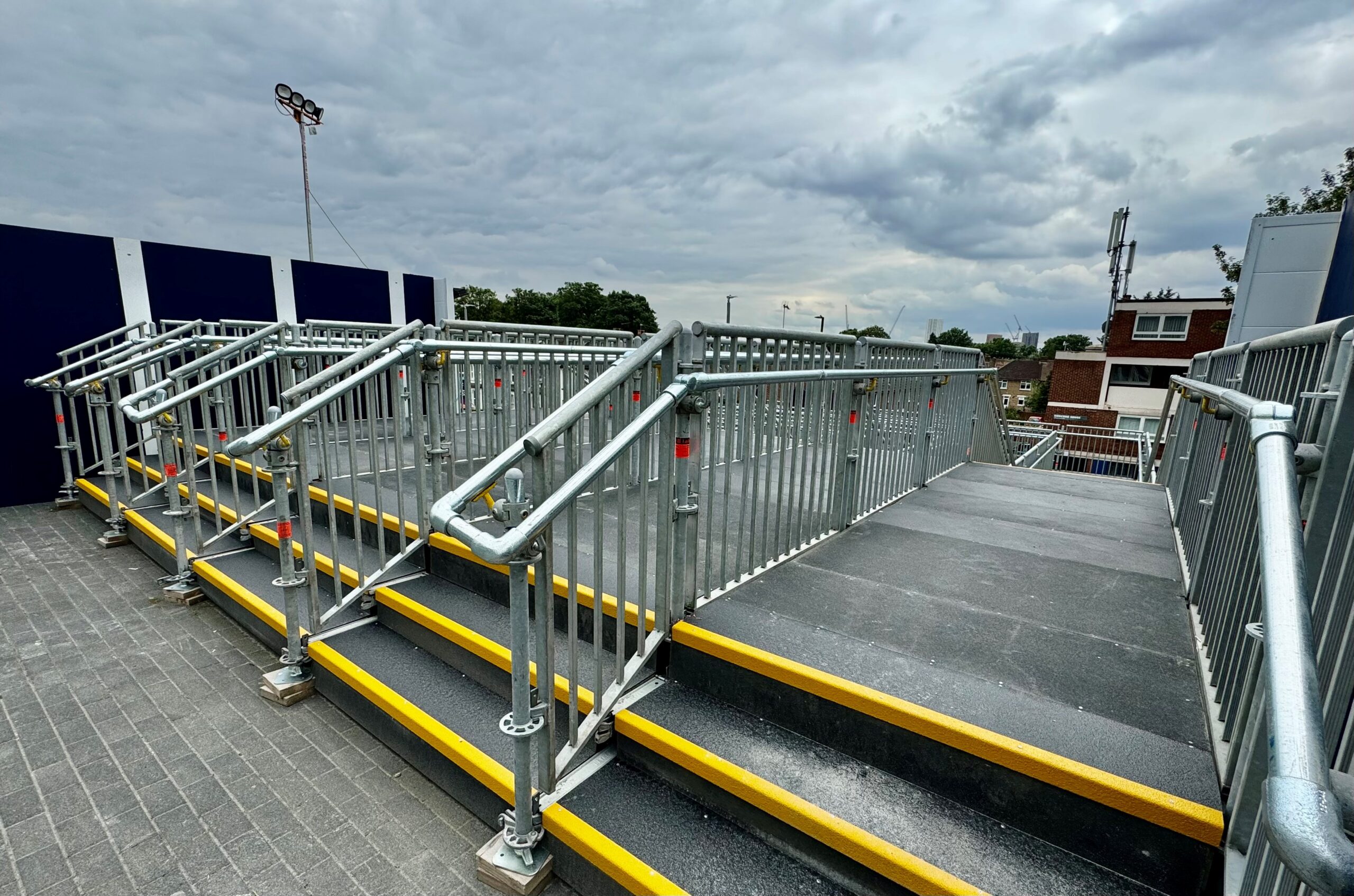 Fast, effective and safe construction for public and site personnel access and can be used for temporary fire escapes, pedestrian walkways and access to all public buildings or structures.